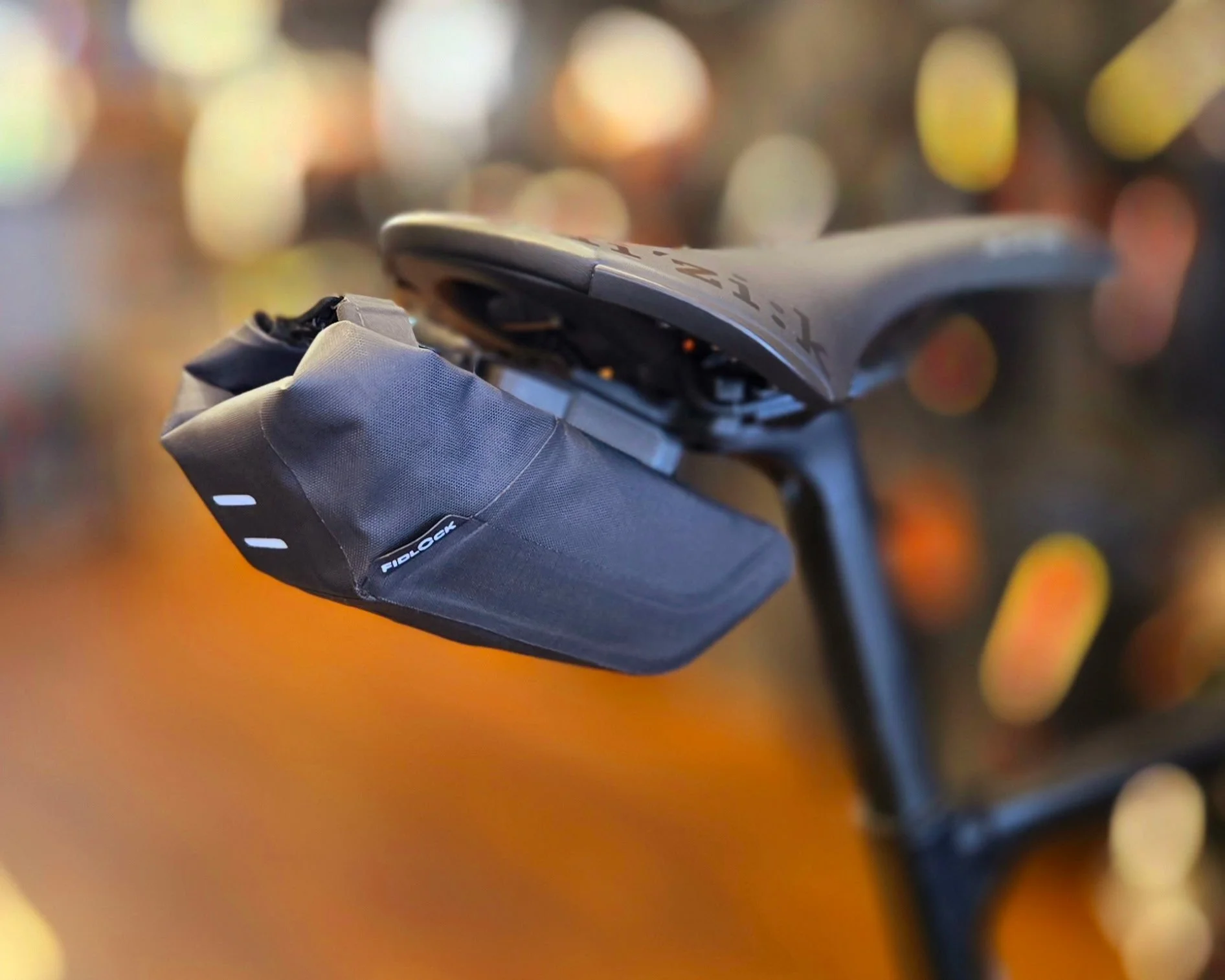 A saddle bag is the most common minimalist setup and works well for most riders.