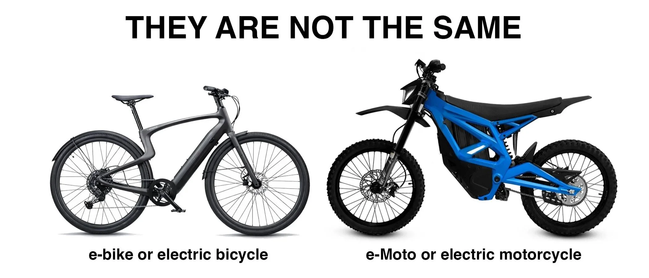 A low-speed, pedal-assist e-bike is being treated the same as a high-powered throttle-driven e-moto.